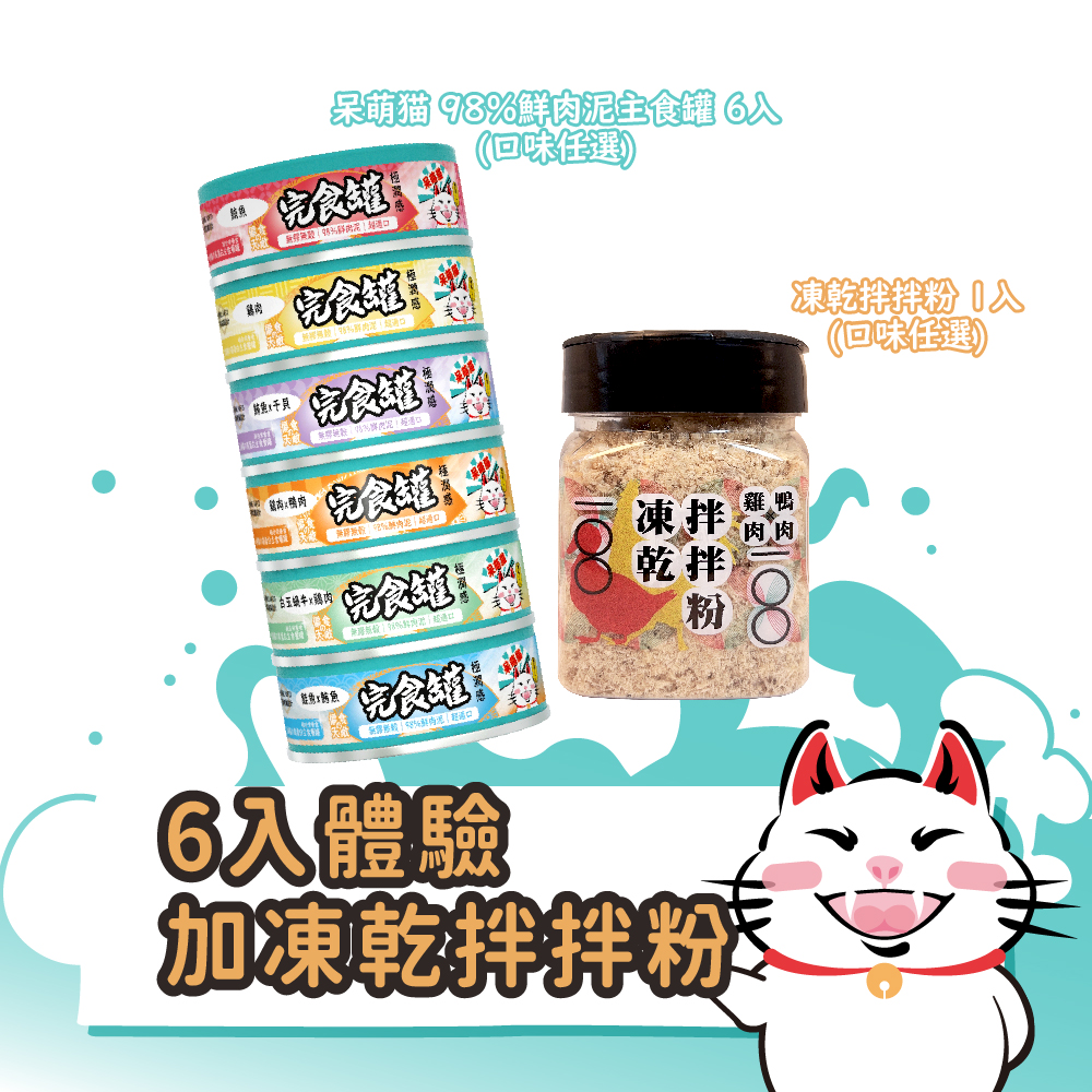 98%鮮肉量 呆萌貓 肉泥主食罐6入體驗組+凍乾拌拌粉(口味任選)