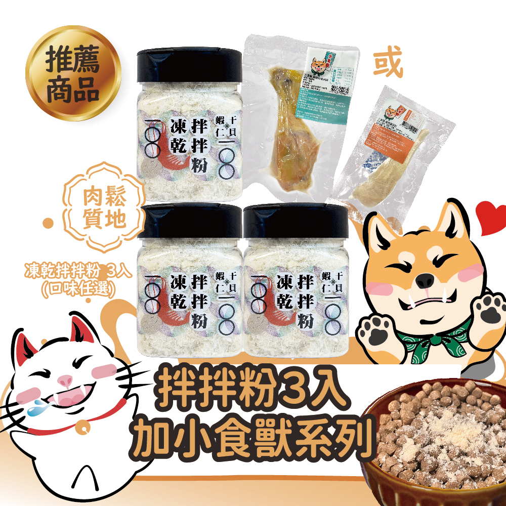 【嗨寵物們】凍乾拌拌粉25g-50g 3入組 贈凍乾7g或鷄腿60g|無添加天然犬貓凍乾粉|提升挑嘴毛孩食慾首選|6種口味