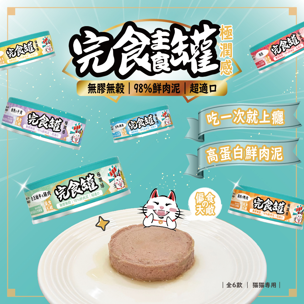 【嗨寵物們】熱銷萬罐 呆萌貓 完食罐 肉泥貓罐頭 80g|天然無穀無膠|98%鮮肉|挑嘴貓濕食|6種口味