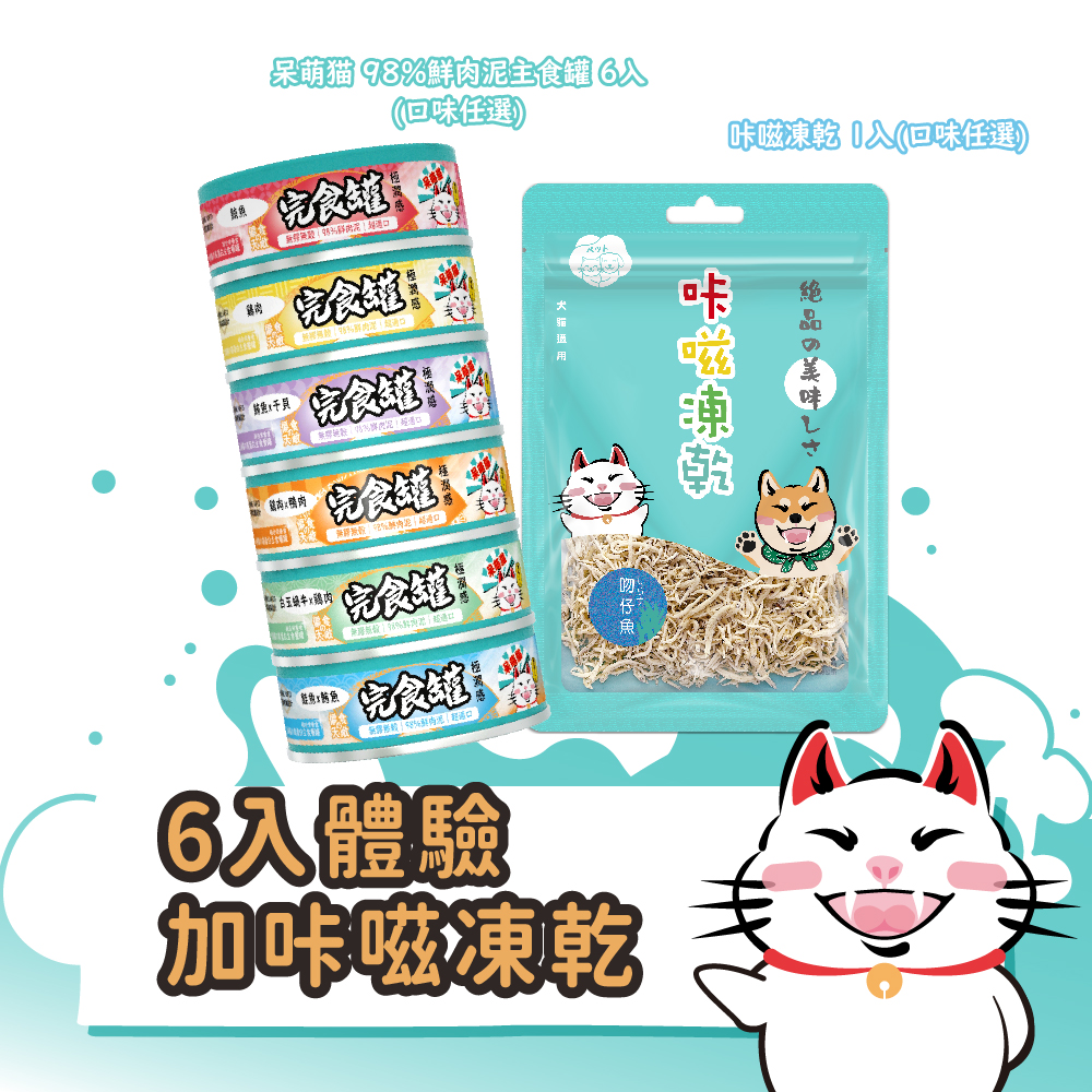 【嗨寵物們】熱銷回饋貓咪體驗組|完食主食罐6入 贈咔嗞凍乾1入|98%鮮肉量肉泥|挑嘴貓最愛