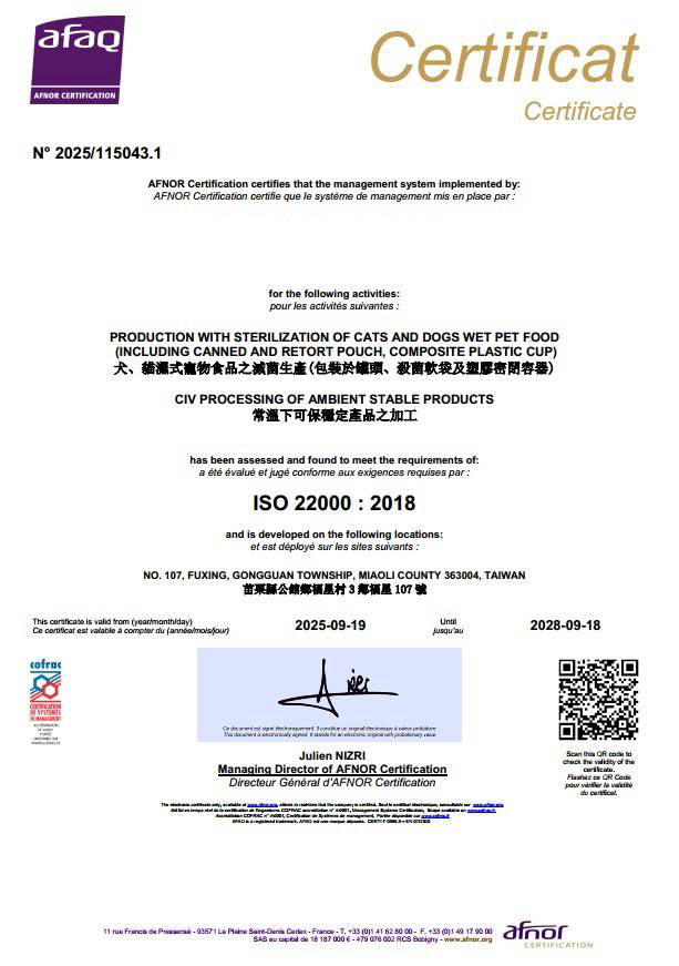 FSSC 22000 國際食品安全認證(法國 AFNOR 認證)