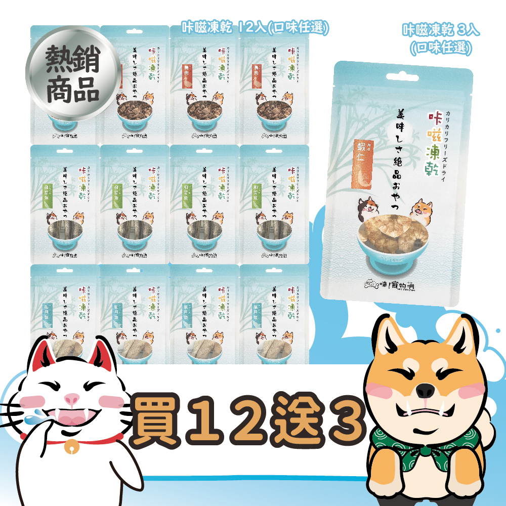 【嗨寵物們】咔嗞凍乾10g-25g 買12送3|自然保留食材營養|天然無添加|貓狗適用零食|10種口味