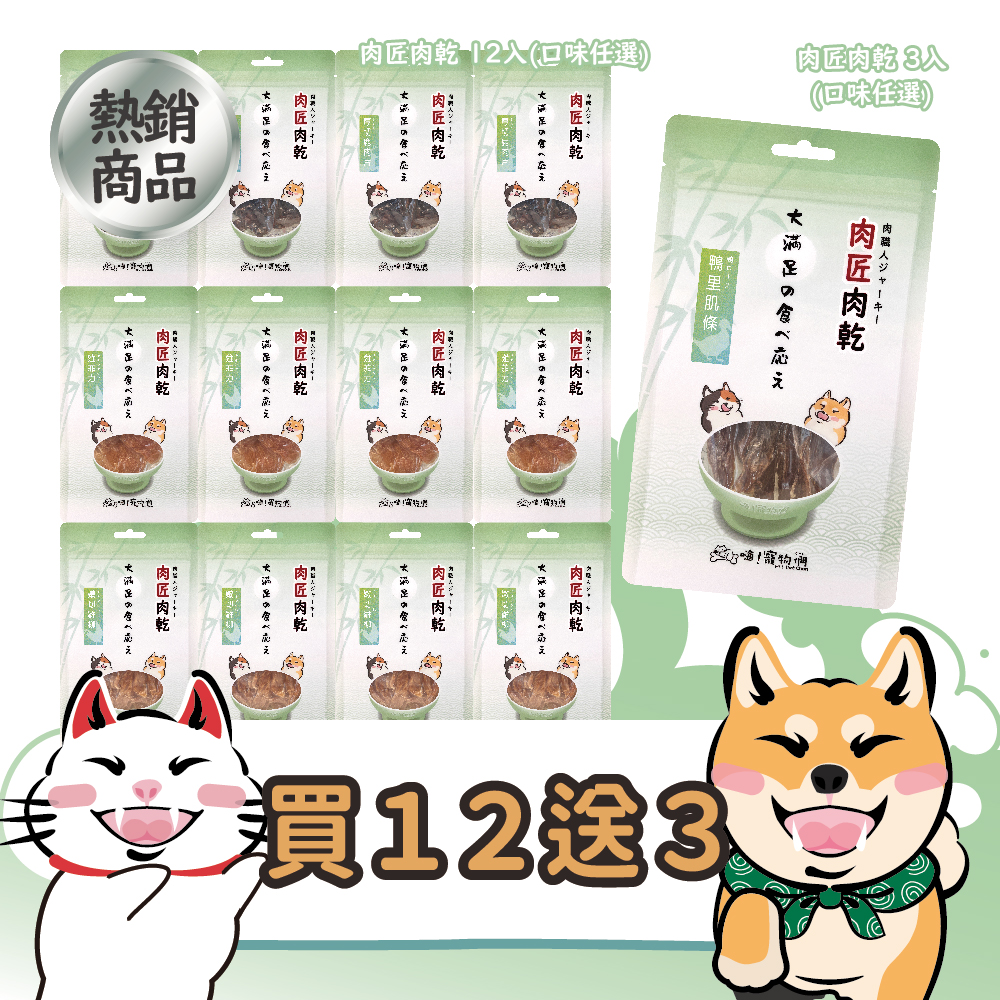 【嗨寵物們】肉匠肉乾40g-60g 買12送3|天然無添加|貓狗適用零食|5種口味
